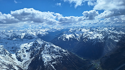 Hilflos wie Mauersegler blitzen die Flugzeuge in der aufgehenden Sonne. Der leichte Morgennebel erhebt sich langsam. Die Einstrahlung wird mit jeder Stunde kräftiger. Helle Südseiten an Berghängen erwärmen sich rascher als der Boden im Tal.